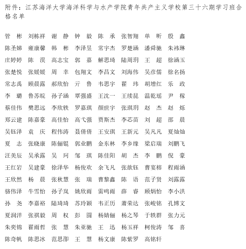 bevictor伟德青年共产主义公司第三十六期学习班合格名单