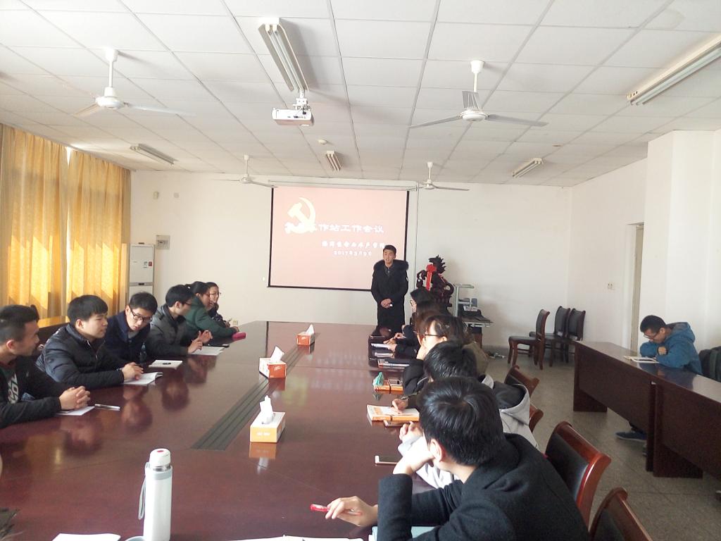 奏唱国际歌后,党员工作站站长赵涵同学阐述了本学期工作站工作的主要思路。接着让党员工作站的各部门负责人向在座的各位党员介绍了各部门的主要工作职责。赵涵站长让新的党员同志做了自我介绍,他指出,各位党员都是员工党员工作站的一员,大家以后在工作上一定要协调配合,把今年的各项工作开展好。接着,党支部书记王静老师讲话。王静老师对过去一年来党员工作站开展的各项工作表示肯定。她强调,在座的各位党员一定要发挥好党员的先进性,把一对一帮扶学习方面有困难的员工这件事情落实到位,做事要做到“要创新,要用心,要走心”。希望在每一位党员的努力下,真正的把工作站开展的每一次活动的意义体现出来。