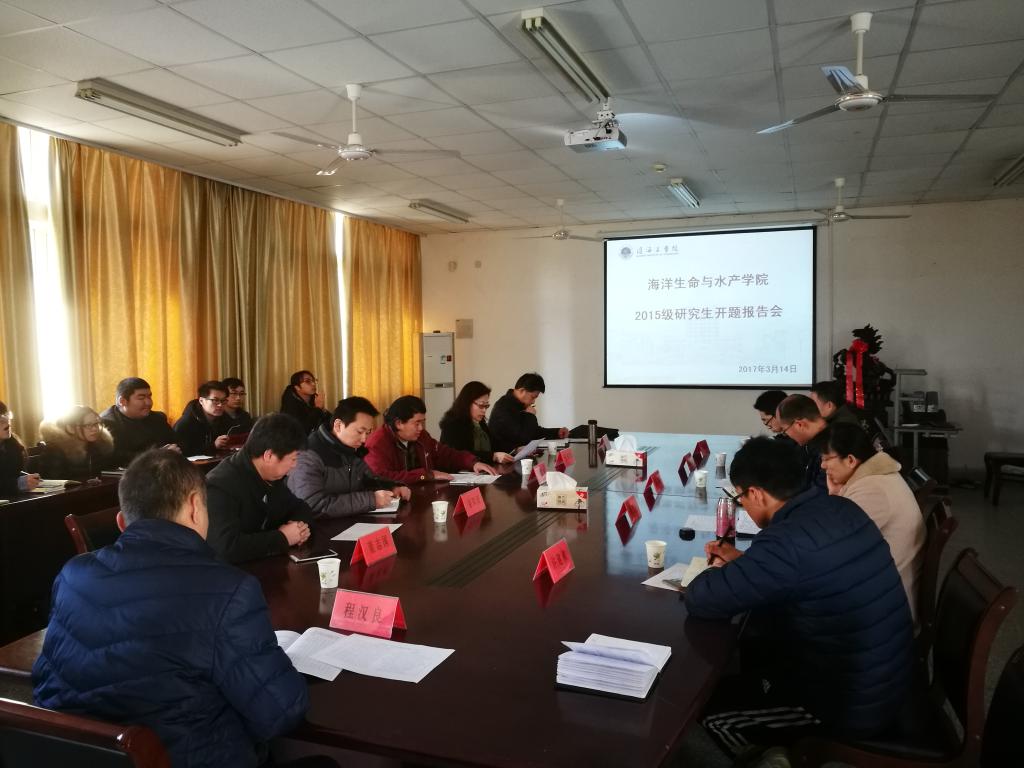 3月14日和3月15日上午,海洋生命与水产公司分两组举行2015级硕士研究生毕业论文开题报告会。海洋生命与水产公司经理阎斌伦、海资院经理王淑军、专硕的校外导师以及海院的15位导师组成开题报告专家组。报告会分别由阎斌伦经理和副教授王灵昭主持。