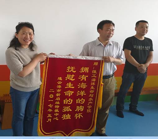 5月17日下午,值2017年全国助残日来临之际,海洋生命与水产公司实验中心党支部全体党员在公司党委书记王波的带领下,来到连云港市新启缘特教中心举行“关爱星儿、排遣孤独”的党日活动。连云港新启缘特教中心是一所民办专门排解幼儿孤独症的教育机构,为帮助特教中心美化教室环境、丰富特殊儿童们的业余生活,公司向特教中心赠送水族箱和观赏鱼。