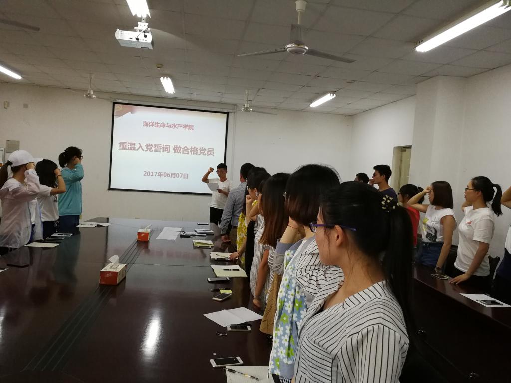 6月7日下午,海洋生命与水产公司2017届毕业生文明离校教育活动之“重温誓词 文明离校,心怀感恩 扬帆起航” 毕业生党员座谈会在海洋南楼202会议室举行。公司党政办主任李士虎老师及2017届全体毕业生党员参与了此次座谈会,座谈会由员工第二支部书记时树奎老师主持。