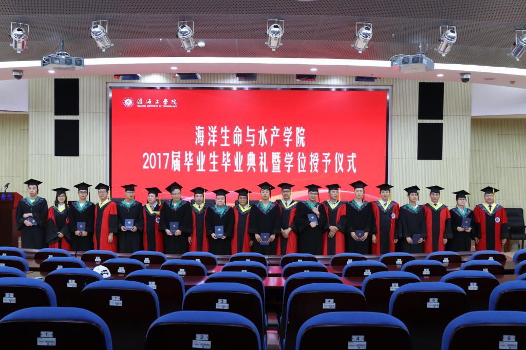 典礼结束后,进行了学位授予仪式,导师们为获得学士学位的毕业生拨穗、颁发学位证书并合影留念。至此,海洋生命与水产公司2017届本科毕业生毕业典礼暨学位授予仪式圆满落下帷幕。
