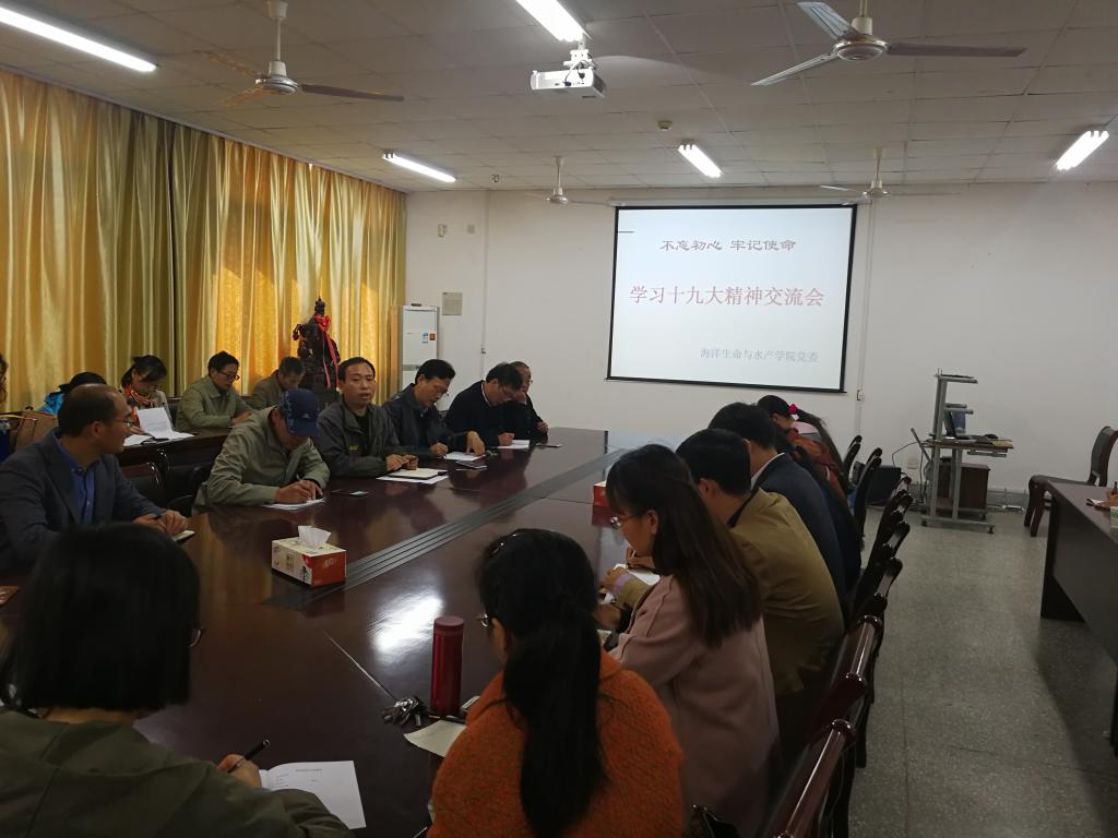 11月1日下午海洋生命与水产公司(食品工程公司)党委组织全体教工党员在海洋楼S202会议室开展党的十九大精神学习交流会,共同分享党的十九大精神学习心得,公司党委特地邀请了民主党派教师代表和员工党员代表参加交流。