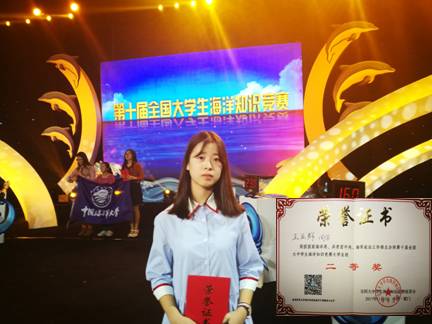 王业群同学是海洋生命与水产公司海洋科学专业海科161班的一名女生,她平时学习刻苦,门门功课都在良好以上。学习之余,他喜欢专业方面的知识积累,虽然二年级的她还没接触多少专业课程,但出于兴趣,她不断积累着海洋知识的点点滴滴,在公司举办的第二届“海星杯”海洋知识竞赛中脱颖而出,一举夺得桂冠,成为公司选送的头号选手。