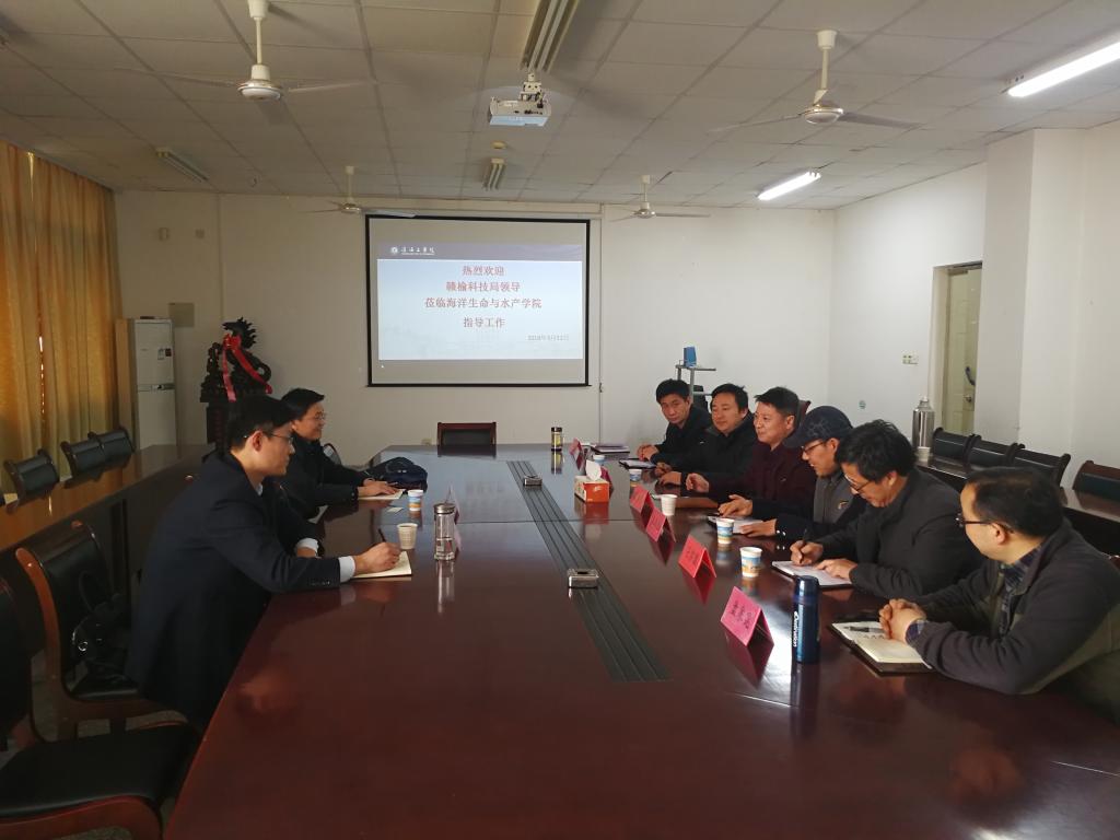 3月12日下午,赣榆区科技局局长相振满一行到海洋生命与水产公司调研,海洋生命与水产公司董志国、张俊杰、徐军田3位副经理和4个系主任参加座谈。双方就产学研合作、人才培养、基地建设等内容展开深入交流。
