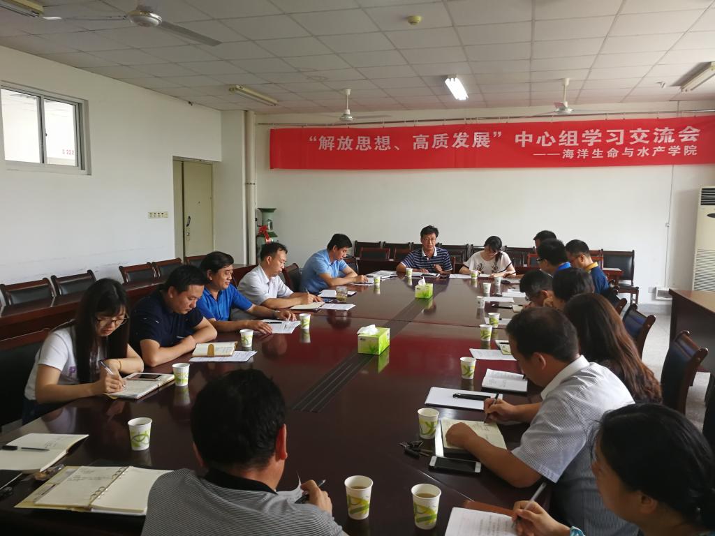 7月11日下午在各支部召开专题组织生活会的基础上,海洋生命与水产公司在海洋楼202会议室召开“解放思想、高质发展”党委中心组(扩大)专题学习交流会。出席会议的有公司党委委员、各系主任、支部书记,并邀请了教学、员工工作等相关职能部门领导参会,王波书记主持会议。