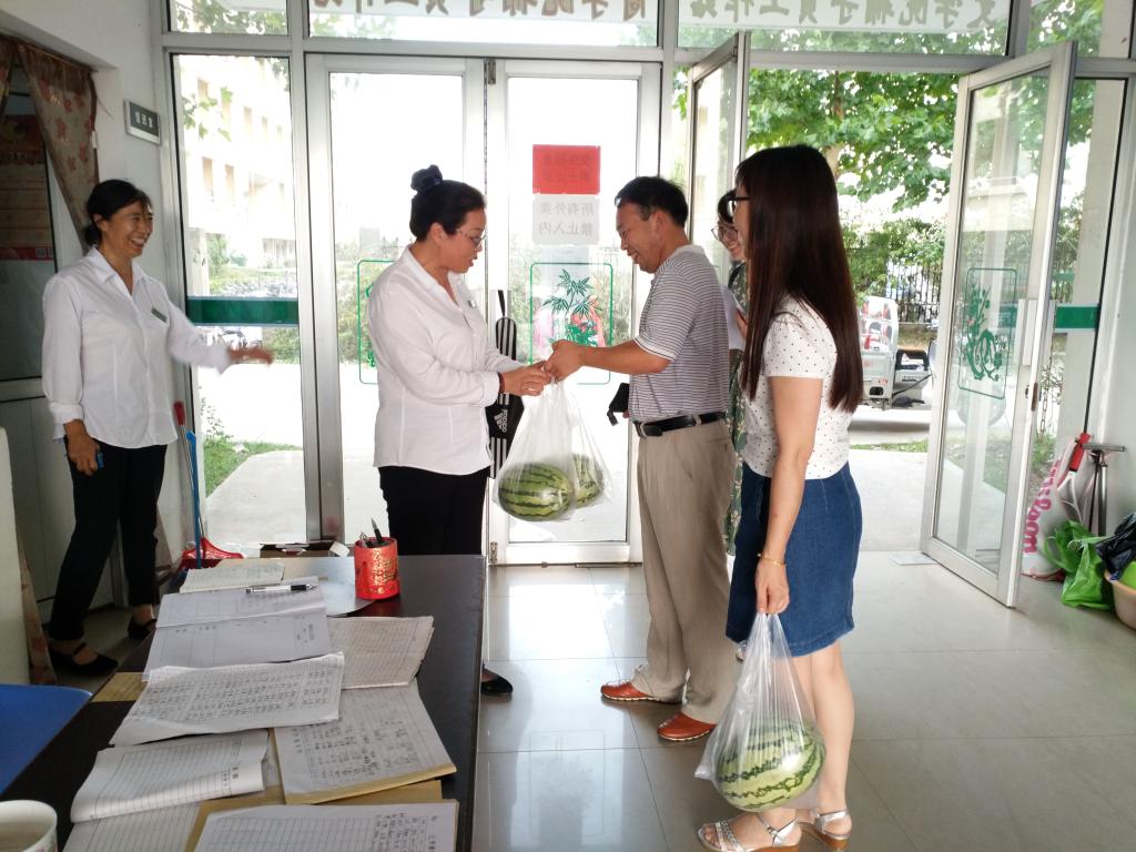 天气炎热,持续的高温天气牵动着海院领导和老师们的心。为进一步了解公司暑期留校考研员工的学习和生活状况,7月28日下午,公司党委书记王波、副书记唐瑶和辅导员老师,走进宿舍看望留校考研的员工及宿管工作人员,并为他们送去解暑西瓜。