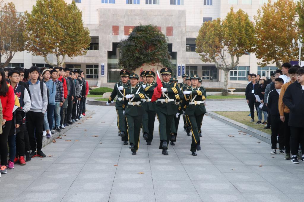 在全体师生的注目礼下,英姿飒爽的国旗护卫队队员们护送鲜艳的五星红旗进场,伴随着庄严的国歌,五星红旗冉冉升起,迎风飘扬,在场的每一个人都深怀对祖国无限的热爱和崇高的敬意。