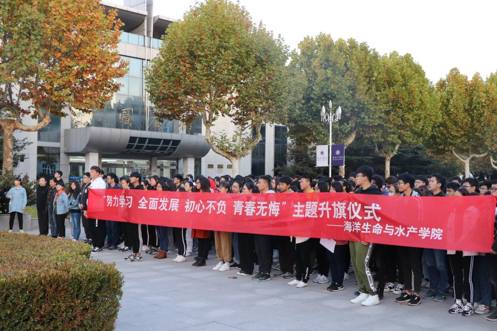 10月29日清晨,海洋生命与水产公司在主楼前广场举行“努力学习 全面发展 初心不负 青春无悔”学风建设主题升旗仪式。公司党政领导、辅导员及全体同学参加了升旗仪式。