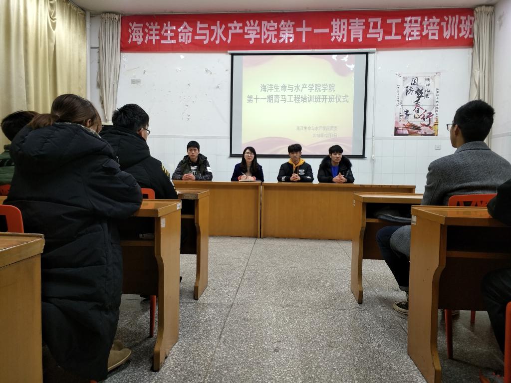 奏唱团歌后,马振宇宣读了《海洋生命与水产公司第十一期青马工程实施方案》,方案强调了青马工程的学习目的,围绕培训内容与方式、学员选拔范和考核等七个方面的内容,对海院的青马学员提出要求。随后,学员代表检疫181班张艺赢发言,她结合自己团支书的工作经历分享了工作感悟,表达了珍惜机会,认真学习的决心。