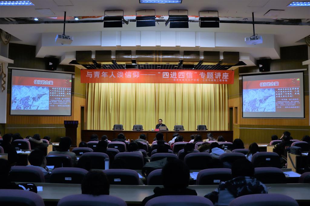12月5日下午,土木与港海工程公司、海洋生命与水产公司在讲堂楼报告厅组织了第十一期青马工程培训班员工干部专题讲座。计算机工程公司党委副书记、副经理黄吉庆作了题为《与青年人谈信仰》的报告,讲座由海院团委书记王静主持。