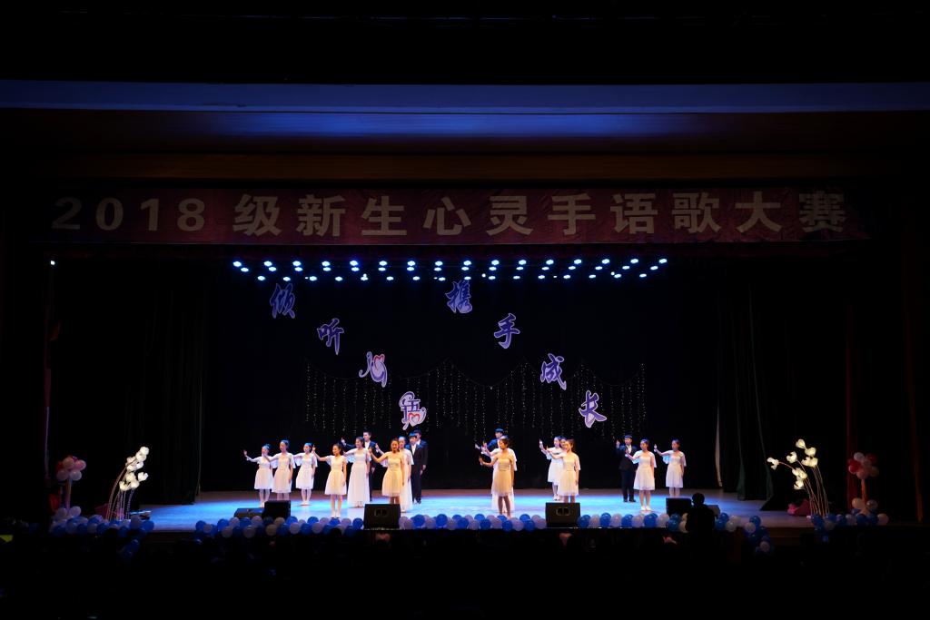 手语是一种无声的沟通方式。随着社会文化的发展,人们发现了手语的艺术之美,也将它同歌曲结合起来,使得它不仅仅是一种语言,更是一门艺术、一种文化,使得手语歌在情绪表现和情感表达方面具有独特的魅力。通过手语歌比赛,不仅能让新生在优美的旋律中感情与意境融合,个人与团体协调,还可以愉悦身心、体味人生真谛,使获得心理成长。