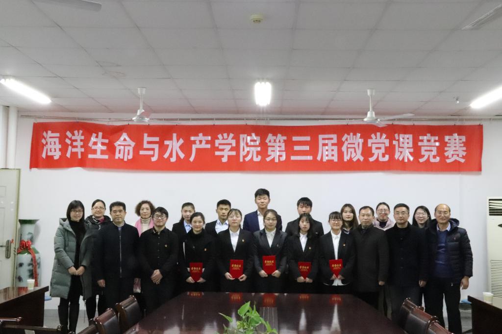 为深入学习贯彻习近平新时代中国特色社会主义思想,领会全国教育大会精神。12月12日晚,海洋生命与水产公司在海洋南楼202会议室举办了第三届员工微党课竞赛。公司党委宣传部部长杨雪英、党委组织部部长纪延光、员工处副处长陈德翼、马克思主义公司副经理沈春梅、公司党委书记王波、副书记唐瑶、各支部书记、员工党员代表以及部分入党积极分子出席了比赛活动。