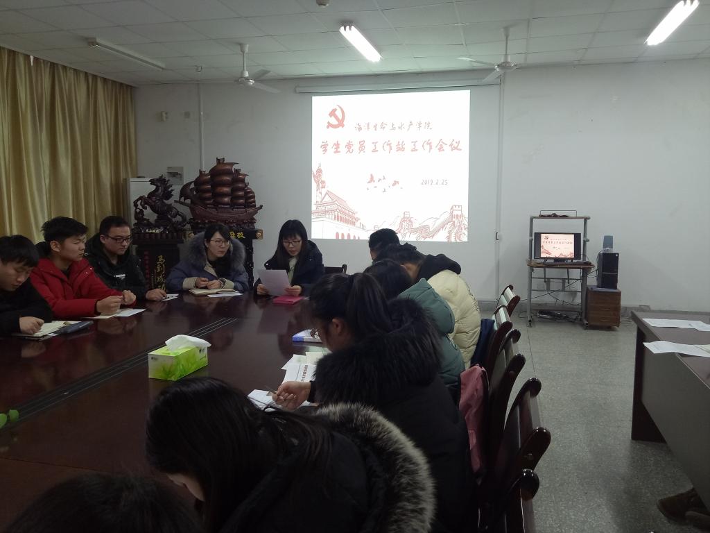 2月25日,海洋生命与水产公司员工党员工作站新学期工作会议在海洋南楼202会议室召开。公司党委副书记唐瑶,员工党支部书记王静、唐振新及全体员工党员参加会议。
