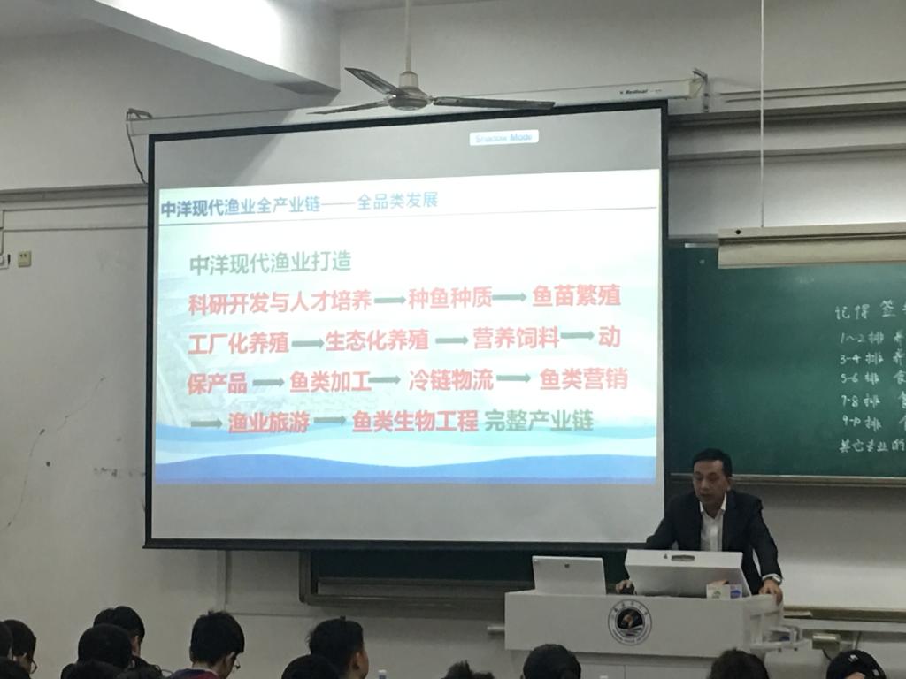 讲座活动中,朱永祥首先介绍了中洋集团的业务范围,并重点讲解了中洋现代渔业全产业链。接着,朱永祥从中洋集团“永不畏难、永不满足”的企业精神、“做企业,首先是做人,永远是做人”的核心价值观、“引领现代渔业,担当社会责任,惠及亿万民众”的企业愿景和“弘扬张謇、产业兴邦、护佑自然、佑福人类”的企业使命这几个角度阐述了中洋集团的企业文化。然后,朱永祥结合目前中洋集团的岗位需求情况,为大家讲解了当前的就业形势。最后,朱永祥鼓励大家积极发挥自身专长,勇于迎接挑战,在就业创业上一路远航。