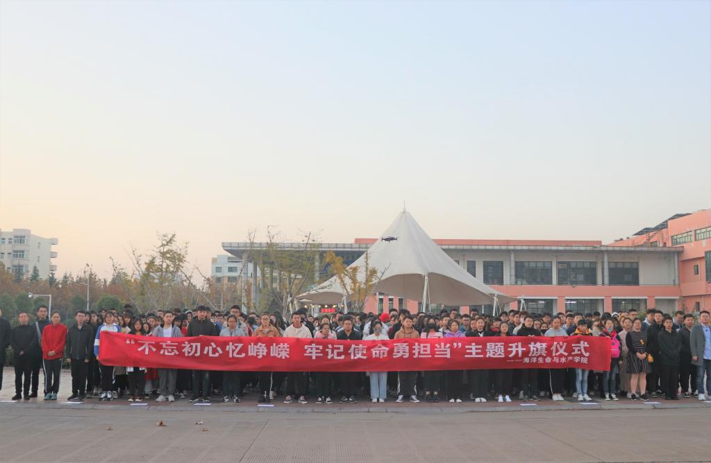 11月11日清晨,海洋生命与水产公司在四食堂广场前举行了“不忘初心忆峥嵘,牢记使命勇担当”主题升旗仪式,公司党政领导、全体辅导员、所有2018级本科生以及2019级研究生参加了此次升旗仪式。