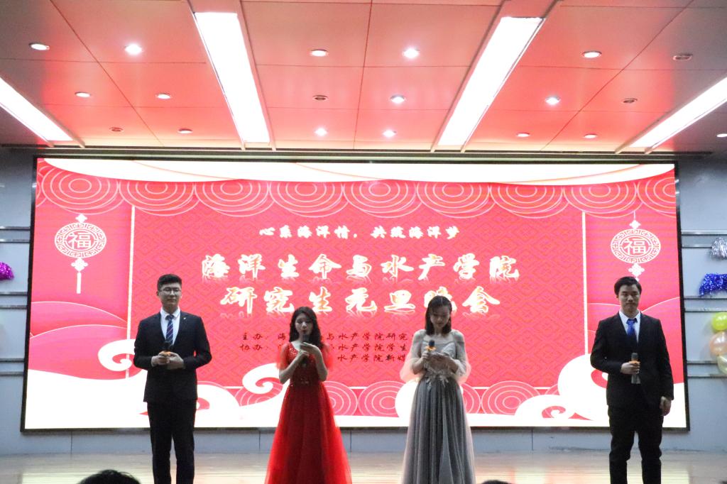 2019年12月26日19点,海洋生命与水产公司“心系祖国情,共筑海洋梦”研究生元旦晚会在艺术楼报告厅隆重举办。出席本次晚会的有公司党委研究生工作部部长舒伟、公司党委书记王波、经理徐军田、公司党委副书记张根友,研究生导师代表、全体辅导员及研究生。