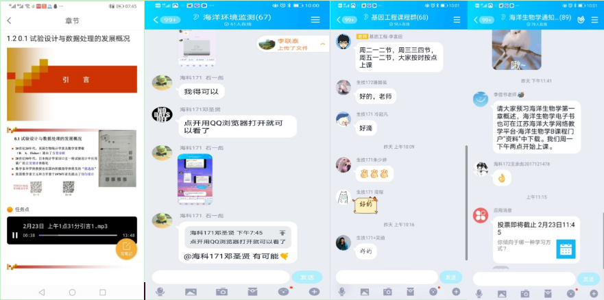 教师积极开展线上教学准备工作,在短时间内利用bevictor伟德课程在线教学平台、中国大学MOOC、雨课堂等各种教学平台和教学工具建立起了在线教学模式,设计了课程授课方案,利用QQ群、微信群、超星学习通等工具与员工建立起了沟通渠道。