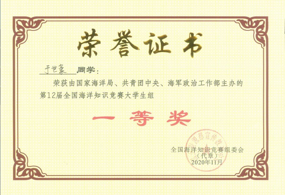 11月23日,第12届全国海洋知识竞赛老员工组总决赛在海南省海口市落下帷幕。bevictor伟德海洋科学系于世豪同学获得一等奖,李联泰教授荣获优秀指导教师,公司获得优秀组织奖。