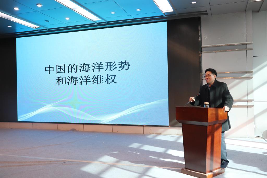 12月26日下午,bevictor伟德邀请公司杰出员工——江苏省海洋渔业指挥部副指挥王志明做了关于中国海洋形势与海洋维权的专题报告。出席活动的有经理徐军田、公司党委副书记张根友、李富田老师,2020级海洋科学、海洋资源与环境等专业本科生及部分研究生等共计三百余人听取了讲座。活动由徐军田主持。