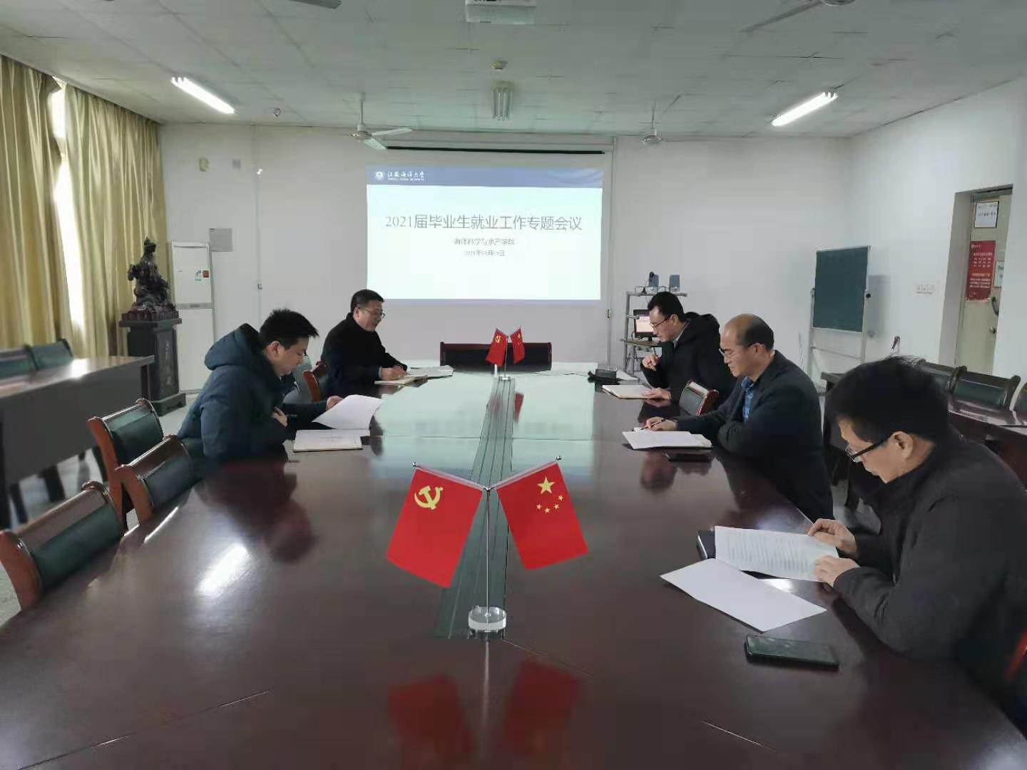 3月3日下午,海洋科学与水产公司在海洋南楼202会议室举行2021届毕业生就业工作专题会议。全体院领导、党政办主任、辅导员等参加了会议。 会上,公司党委副书记张根友通报了2020年公司员工年终就业情况,传达了上级主管部门关于2021年就业工作推进要求,解读了2021年就业工作年度目标及所面临的严峻形势。与会者就年度就业目标分解及公司2021届毕业生就业考核管理办法等进行了充分讨论,大家围绕就业工作开展主要着力点、就业率提升关键突破口及相关考核激励政策等进行了深入的探讨和交流。 院长徐军田做了总结发言,他指出就业是专业建设和人才培养重要组成部分,公司高度重视毕业生就业工作。2021年因疫情影响,就业形势依然严峻,全院教职员工要进一步提高认识、强化责任,加大就业工作推进力度;要充分调动各方面的积极性,提升服务效能和服务质量;要点对点摸清毕业生就业动态,做好就业的帮扶工作。