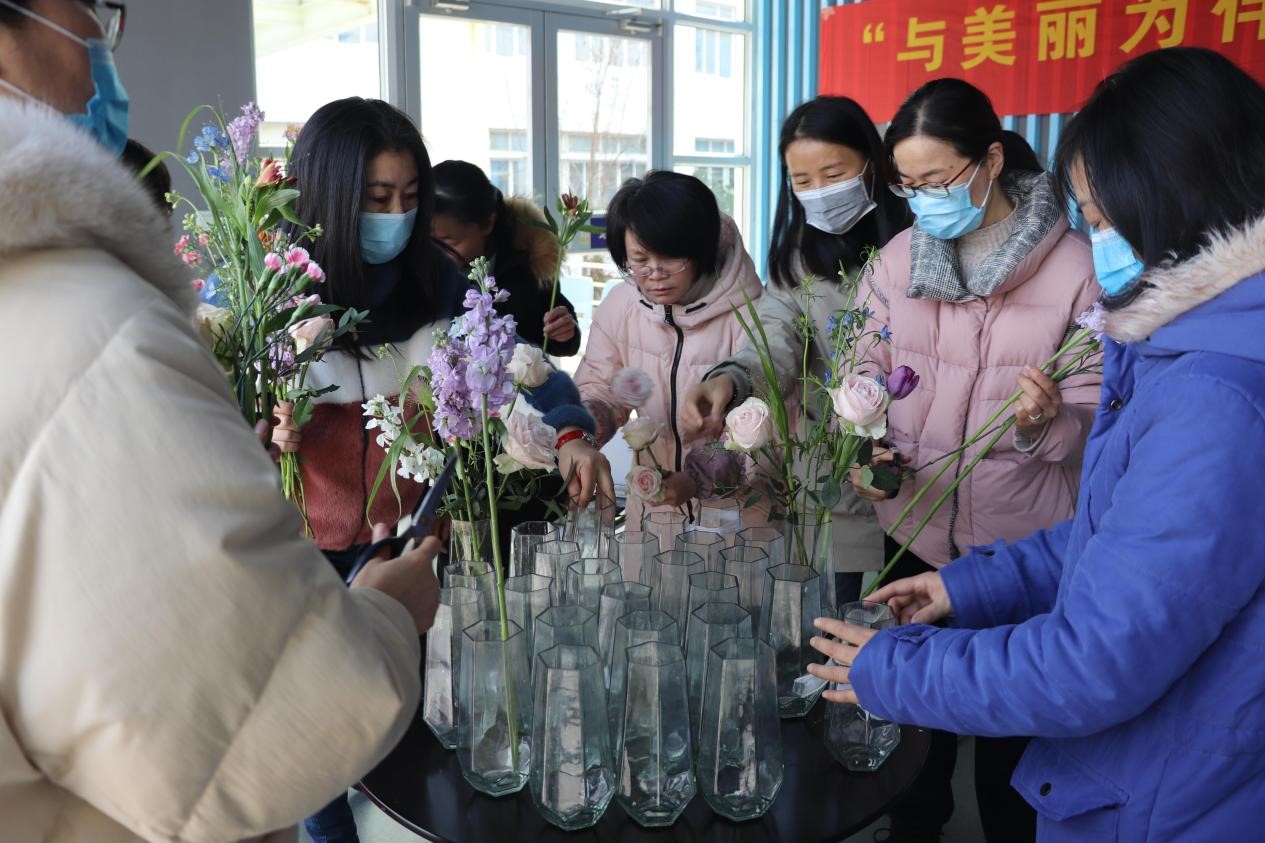 3月8日下午,为庆祝第111个“三八国际妇女节”,丰富公司广大女教职工的精神文化生活,激励广大女教职工弘扬自尊、自信、自立、自强精神,公司在海洋楼蓝色驿站举办“与美丽为伴,携幸福同行”主题插花活动。