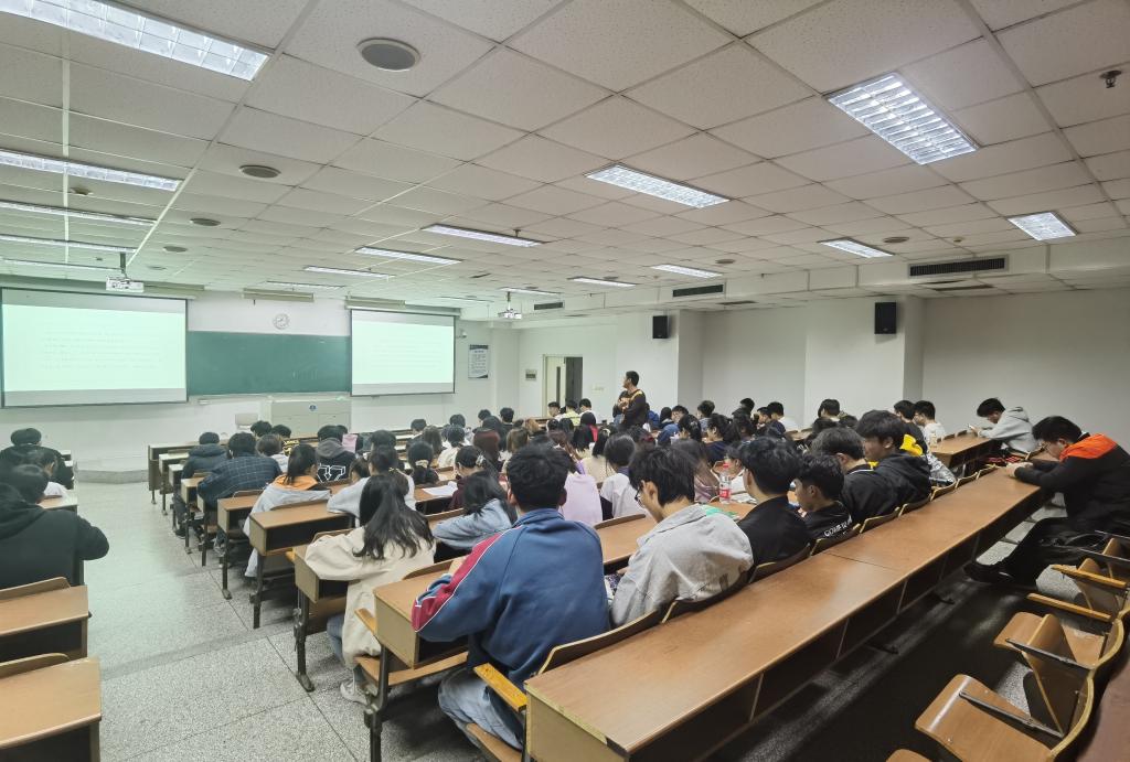 唐振新主讲的是拒绝网贷、树立正确的消费观与防诈骗两个专题教育。通过视频及各类残酷的现实案例向大家展示了分期购、校园贷的套路和陷阱,并向大家传达了健康理性的消费观念,呼吁大家量入为出,树立理性消费观。防诈骗专题则通过分析了常见的街头诈骗、电信网络诈骗等手段,提高了大家的防范意识,并传授了一些遇到诈骗事件时的应对及处理方法。
