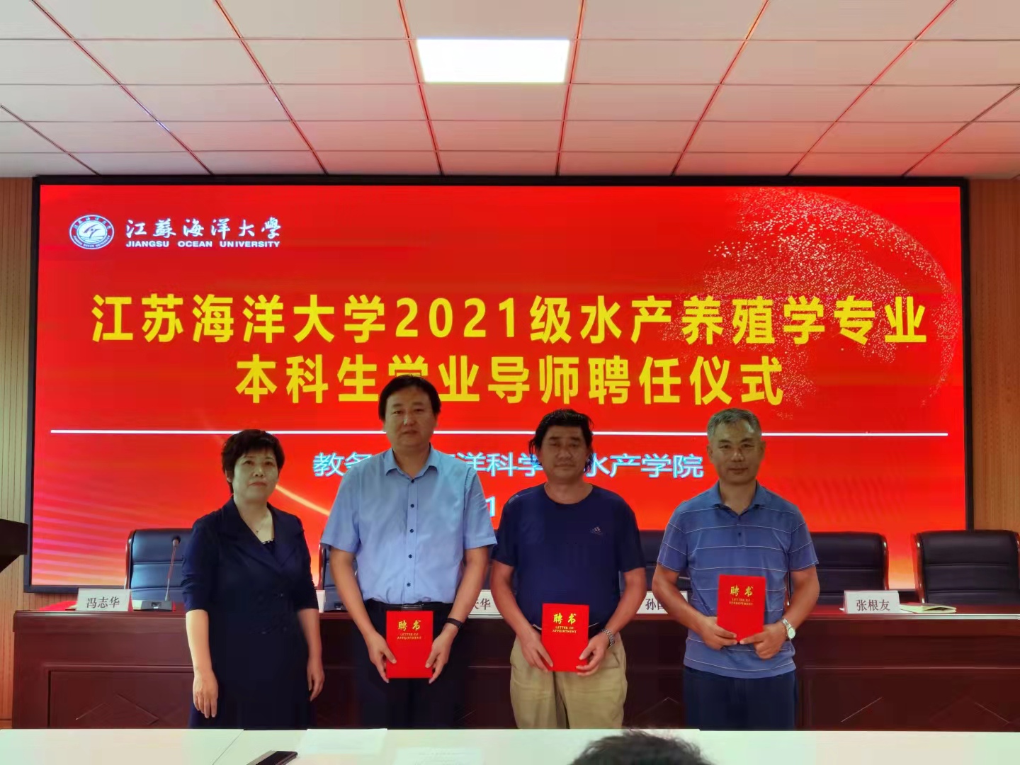 会上,孙国红副处长宣读了《关于聘任bevictor伟德2021级水产养殖学专业本科生学业导师的决定》,孙国红副处长、杨天华书记、徐军田经理共同为23位学业导师颁发了聘书。