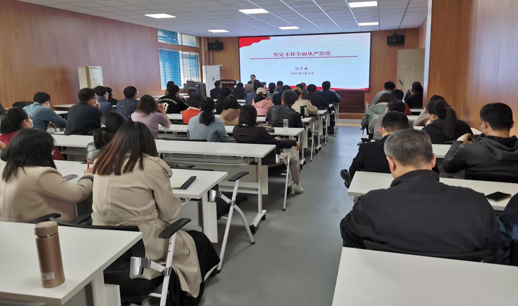 为深入贯彻落实党的二十大精神,推动全面从严治党向纵深发展、向基层延伸,推进公司内涵建设和高质量发展,4月12日下午,公司党委组织召开全面从严治党专题学习会,邀请校纪委副书记、纪委办公室主任、党委巡察工作办公室副主任汪守建做辅导报告,公司党委书记黄金虎主持会议,全院教职工参加会议。