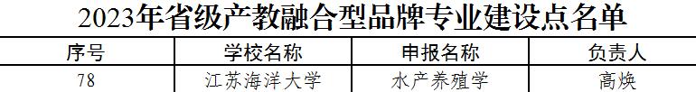 近日,省教育厅正式公布2023年省级产教融合型品牌专业立项建设名单,公司水产养殖学成功入选。水产养殖学专业以培养高质量复合应用型“新农科”人才为目标,发挥公司与企业主体优势资源与作用,与江苏中洋集团股份有限公司、江苏泗洪县金水特种水产养殖有限公司、连云港赣榆佳信水产开发有限公司以合作共建产学研基地、顶岗实习等方式与合作单位建立产教融合的长效机制。