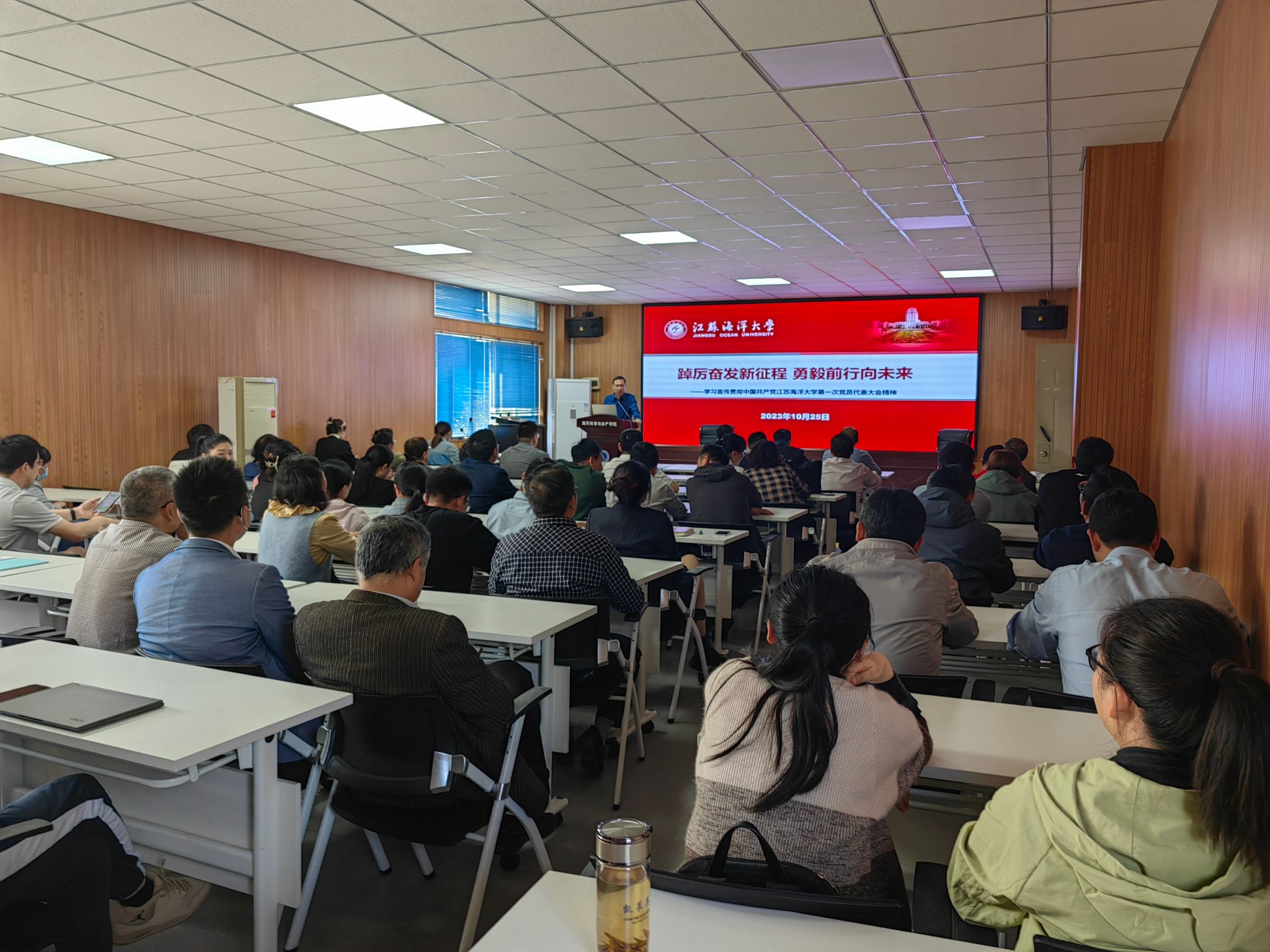 为深入学习贯彻党代会精神,10月25日,公司党委书记、党代会代表黄金虎为bevictor伟德全体教职工宣讲校第一次党员代表大会精神。