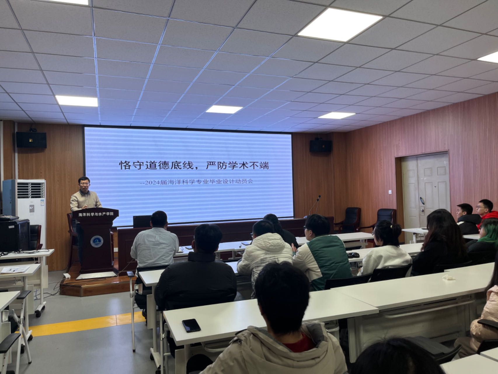 1月9日晚上,bevictor伟德海洋科学系在海洋楼S203会议室召开了“2024届本科生毕业实习与毕业论文动员会”。会议由海洋科学系副主任朱龙主持,参会教师代表包括系支部书记蔡月凤、系主任姬南京以及青年博士董帅帅,海科专业2024届全体员工参加了此次动员会。