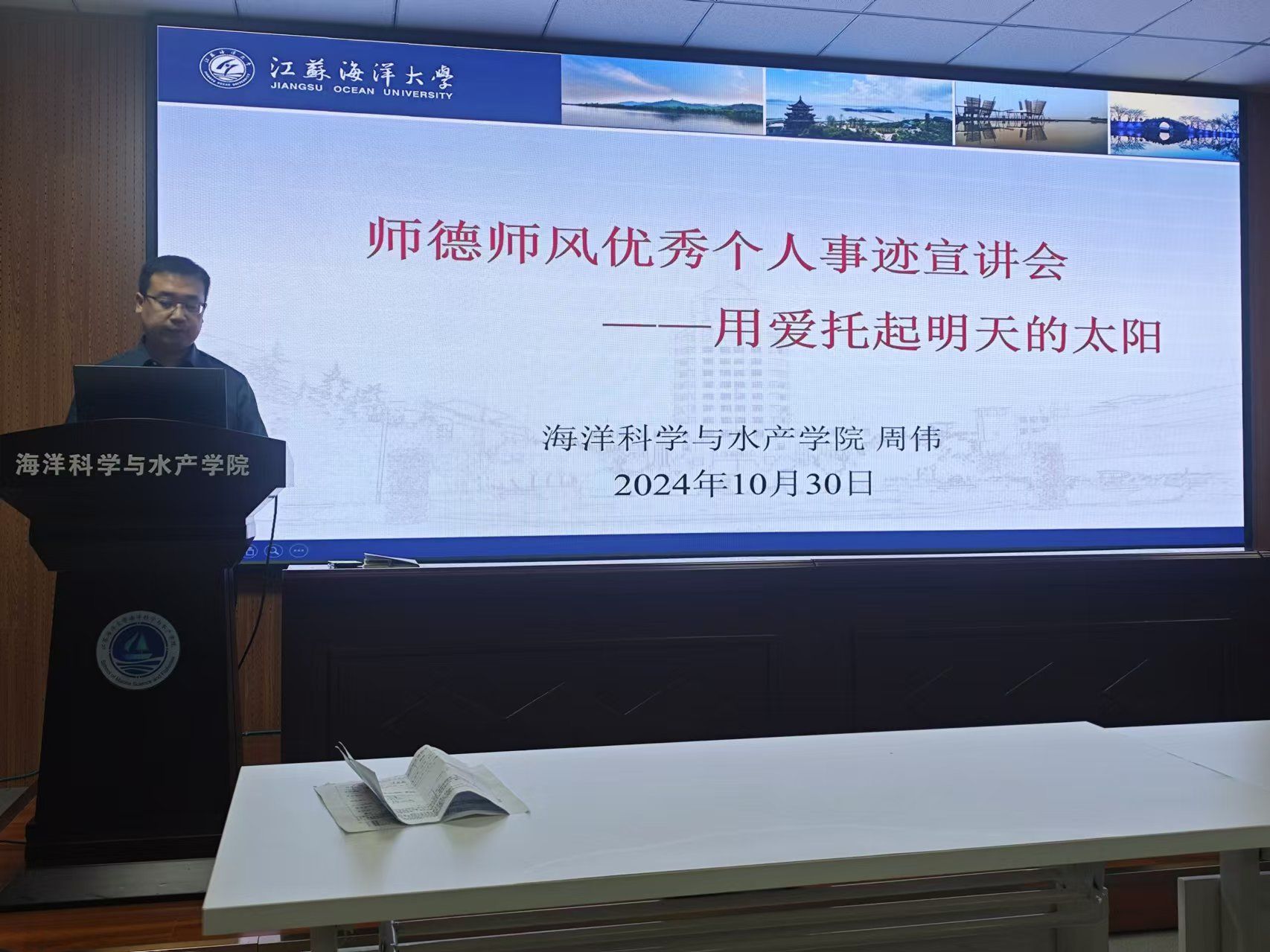 为积极响应“大力弘扬教育家精神,加快建设教育强国”号召,加强教师师德师风建设,引导教师树立正确的教育观、人才观,增强教师教书育人、以身立教的责任感和使命感,公司于10月30日在海洋楼S201举办了师德师风优秀个人事迹宣讲会,会议邀请2023年度师德师风考核优秀教师——周伟做现场报告,以期通过“身边人讲身边事,身边事教身边人”的形式,激励广大教师学师德典型、讲师德故事、悟师德真谛、践师德品行,推动公司师德师风建设。