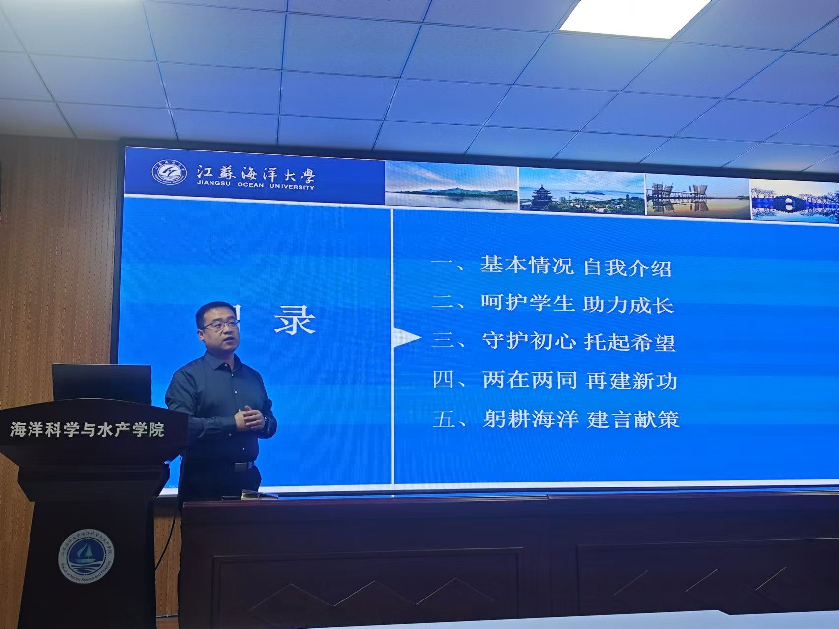 宣讲会上,周伟老师首先感谢公司的培养和公司的肯定、支持、帮助,表达了个人所取得的荣誉属于集体,是公司前辈优秀教师们榜样力量的烛照;然后,他结合本科课堂教学、科学研究和社会服务等一线的经历,谈对教师、师德、师风的认知和感受;其次,他汇报了自己所热爱的党的教育事业和科研创新工作,分享了喜爱与员工交流的感受、感想,总结了多年来从事海洋一线社会服务的喜悦和欢心;最后,他表达了立德树人的初心和潜心育人、静心科研、用心做事、真心待人的决心,并希望以此次宣讲会为契机,向优秀的老师代表学习,不忘初心,砥砺前行,在教书育人、管理育人、服务育人的工作中,坚持信仰为首、师德为先、能力为要,承教育家精神,做勇立潮头“大先生”,不辜负公司、公司和广大师生的厚爱。宣讲过程中,赢得了师生阵阵掌声。
