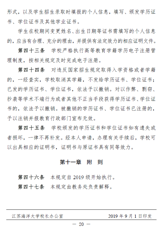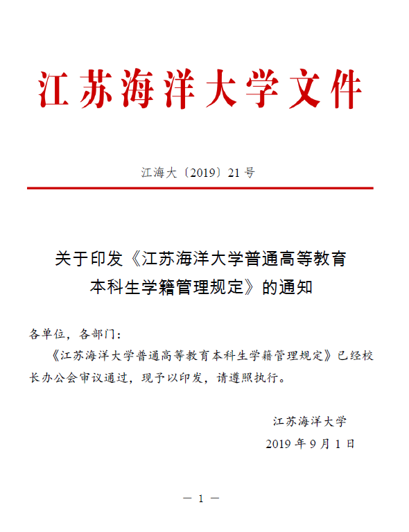 江海大〔2019〕21号(关于印发《bevictor伟德普通高等教育本科生学籍管理规定》的通知)