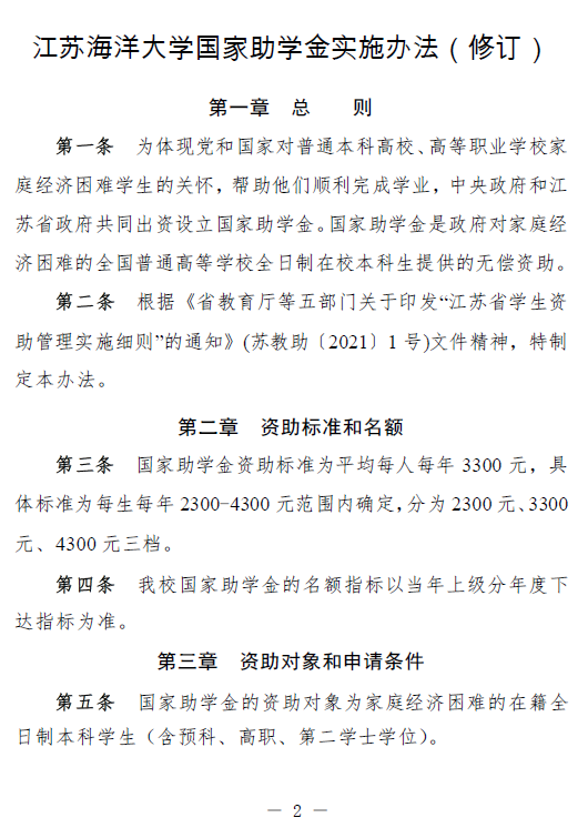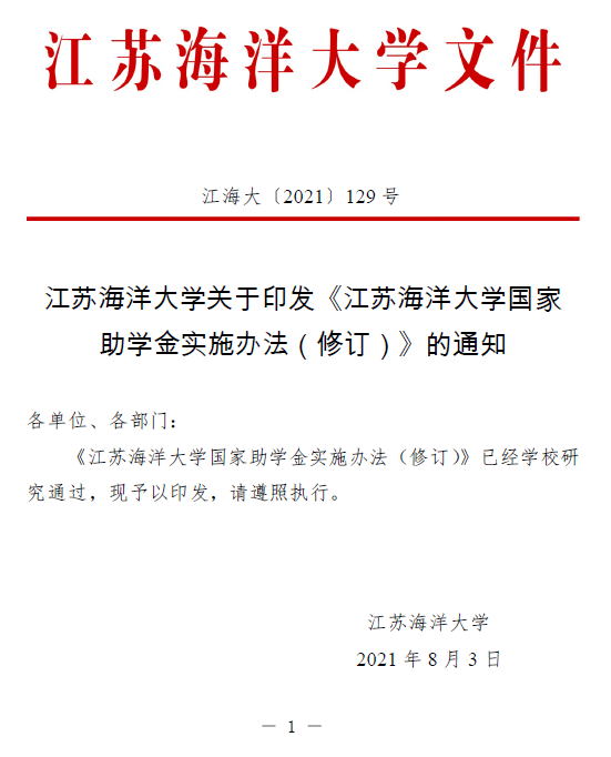 江海大〔2021〕129号 bevictor伟德关于印发《bevictor伟德国家助学金实施办法(修订)》的通知