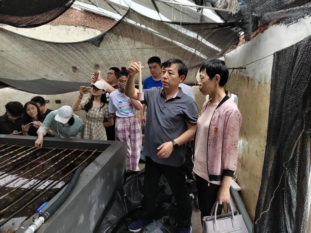 仪式结束后,暑期实践小组成员来到紫菜育苗养殖基地参观条斑紫菜与坛紫菜育苗大棚。公司负责人介绍道:“目前,大棚进行条斑紫菜与坛紫菜的育苗,采用珍珠蚌壳进行条斑紫菜育苗,采用日月贝壳进行坛紫菜育苗,条斑紫菜采用鱼鳞式摆壳培养,这种育苗方式让紫菜苗更合理利用平面空间,坛紫菜采用福建传统的吊养方式立体利用空间。期间通过洗刷换水控制水温及调节光照强度与光照时间,促进紫菜的生长与发育,保证秋季的育苗生产。经过多年的培育发展,我市已经发展成为全国最大的条斑紫菜养殖生产加工和出口创汇基地,产业发展潜力巨大,急需专业技术人才注入新的力量。”