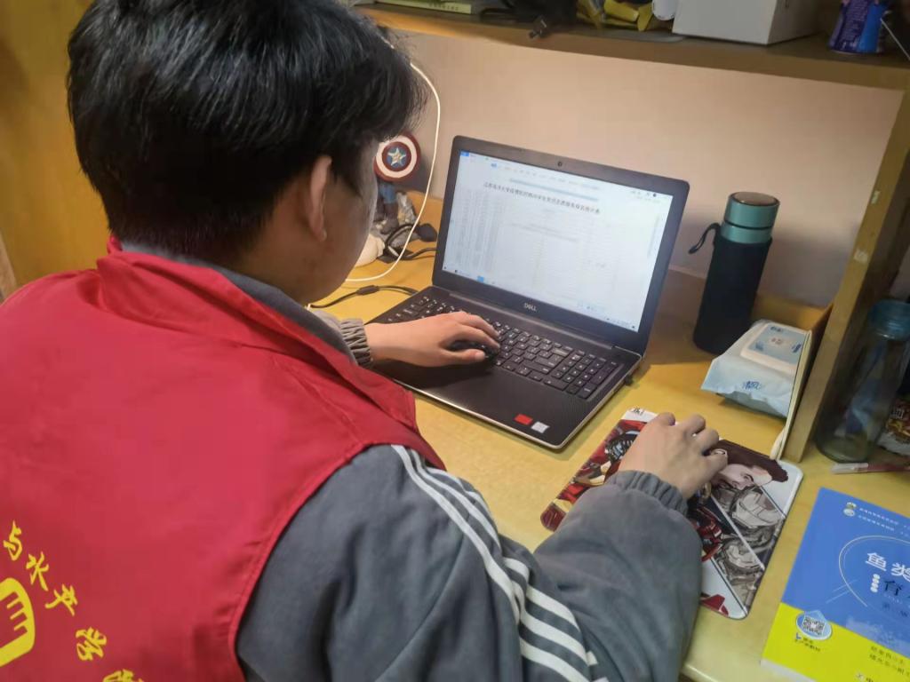 由于原定外出实习,养殖专业的员工前六周的课程压力很大,除了晚上基本上都是满课。在繁重的课程下,张瑜虽然不能穿上白色防护服帮助医护人员进行核酸检测、穿上红色志愿服帮助维持队伍秩序,但他可以利用晚上休息时间,帮助辅导员统计每日核酸人数、调控第二天志愿者的工作安排。“虽然我不能奋战在抗疫第一线,但我可以在后面为大家解决其他协调保障问题。”