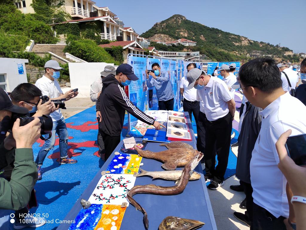 活动期间展示了多件海洋生物标本及贝雕作品,它们栩栩如生的形态吸引了很多观众驻足观看欣赏,从真鲷到多宝鱼,从三疣梭子蟹到中国团扇鳐,无不引起观众的好奇并纷纷进行咨询。