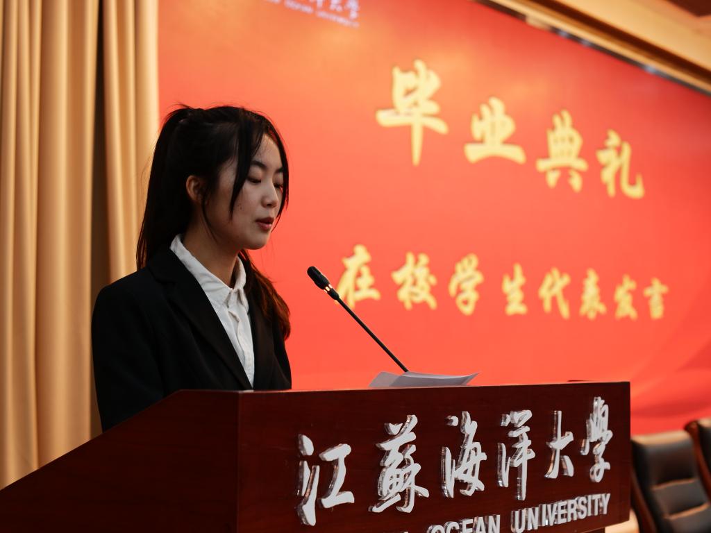 员工代表吴雨晨、陈祥顺以及董欣雨三位同学分别进行发言。吴雨晨代表全体研究生毕业生感谢母校的辛勤培育,表示将时刻铭记校训,为社会贡献自己的青春力量。陈祥顺代表全体本科毕业生感谢老师们的谆谆教诲,并表示无论走到哪里都是江海大人,都会和江海大永远在一起。董欣雨代表全体在校员工,向即将离开母校、奔赴人生远大目标的毕业学长学姐们表达最衷心的问候与祝福。