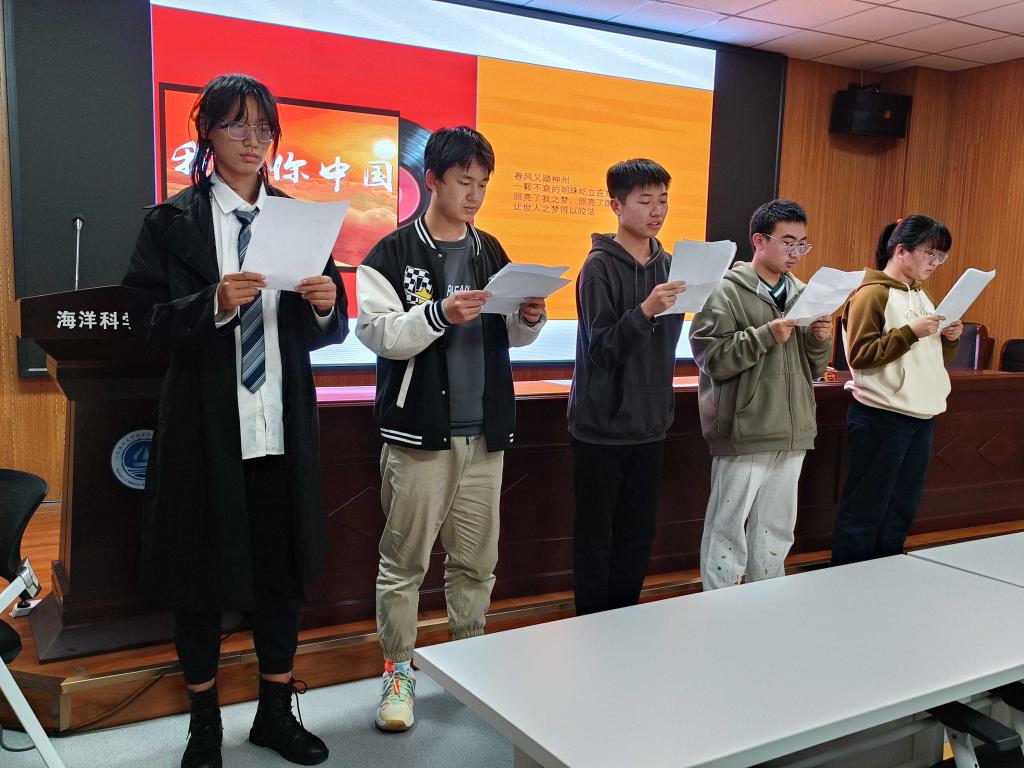 11月27日晚7点,bevictor伟德爱国主题朗诵比赛初赛在海洋南楼203顺利举行。本次活动由团委实践部李沛橙和吴亚娟主持,由院团委副书记李昌文和孙雨琰、院大成主任孔博文、院大成副主任胡骏熙担任评委。