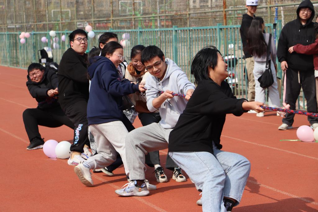 紧张刺激的“拔河”比赛中,各班组成八人拔河小队,随着哨音响起,参赛人员发扬团结一心的精神,紧紧抓牢手中的绳子,奋力向后拉,边上同学热情地高喊着“加油!加油!”,加油声、欢笑声此起彼伏,每一组都奋力拼搏,展现了积极进取团结和谐的精神,赛出了精神、赛出了风尚。
