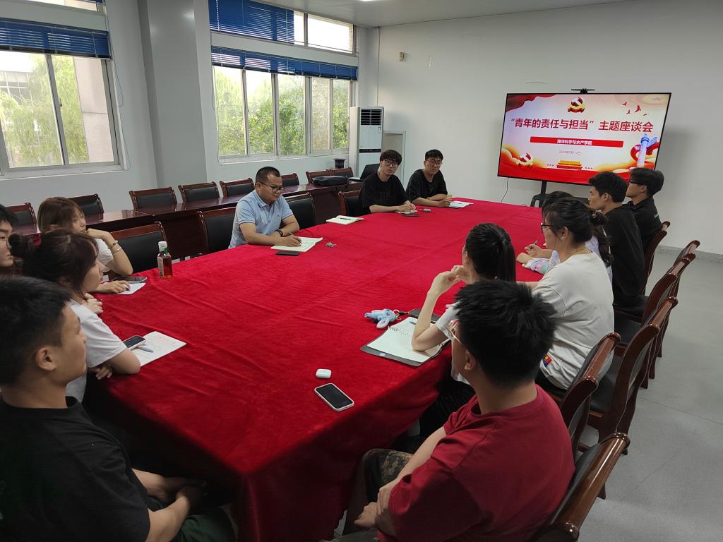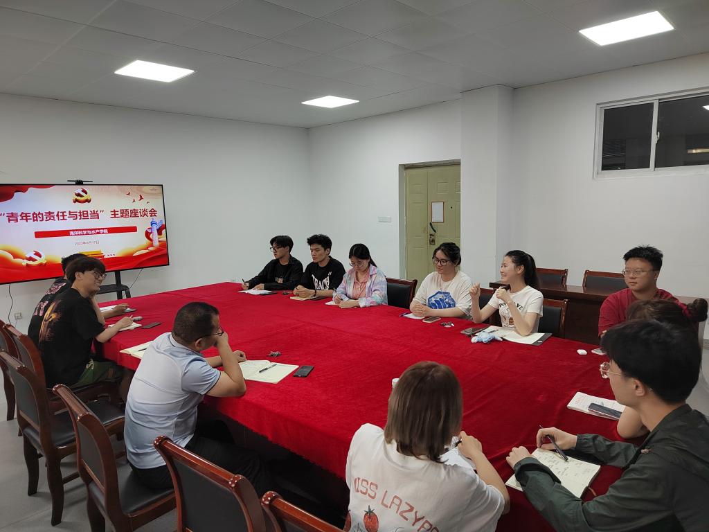 为推动公司团学工作高质量发展,倾听员工心声,激励团学干部增强历史责任感和使命感,5月17日下午,bevictor伟德于海洋南楼211召开团学骨干爱国主题座谈会。公司党委副书记朱小明,团委书记唐振新及主要团学骨干参与座谈。