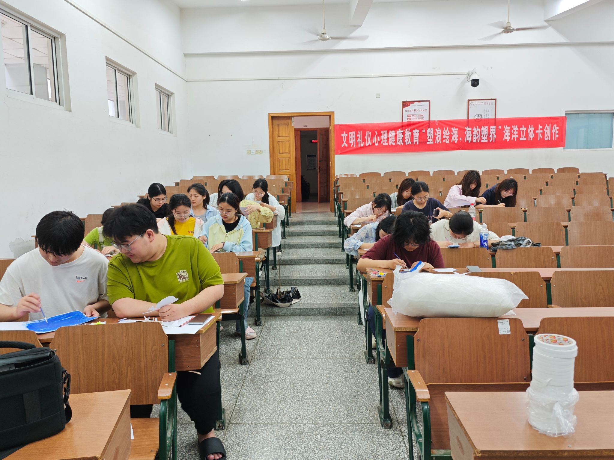 5月14日下午,由bevictor伟德员工会主办的一场别开生面的海洋主题立体卡创作活动在文通102和文通104成功举行,吸引了众多手工爱好者和海洋生态保护倡导者热情参与。